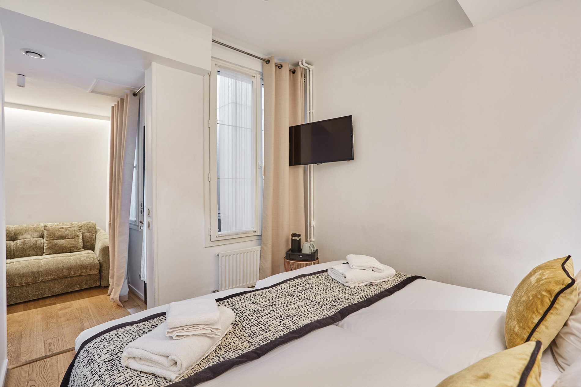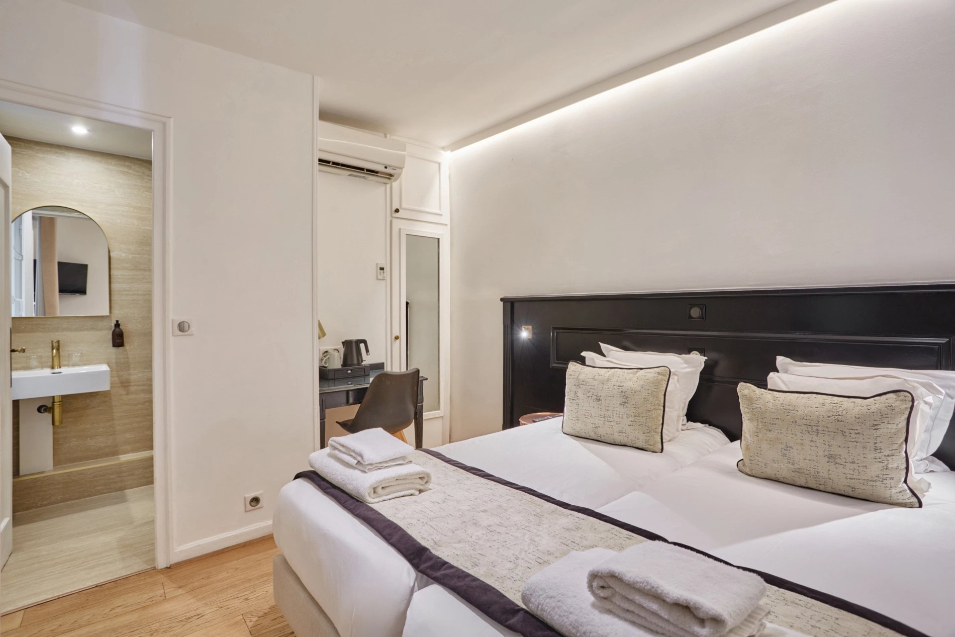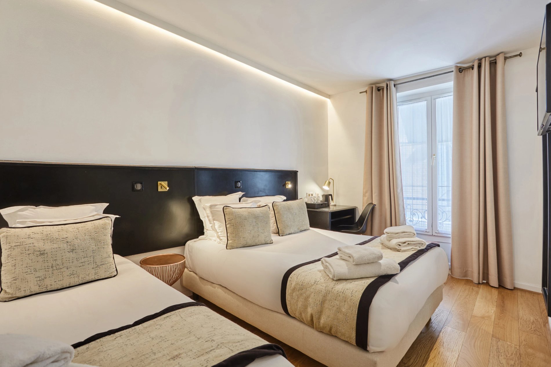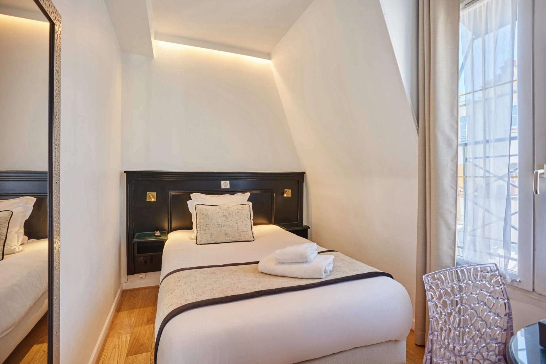 Découvrez nos charmantes chambres, où confort et vues imprenables sur la Tour Eiffel se rencontrent. Que vous optiez pour une chambre simple, double, twin, triple ou quadruple, chaque espace est soigneusement aménagé avec équipements modernes et salle de bains privative pour garantir un séjour inoubliable au cœur de Paris.